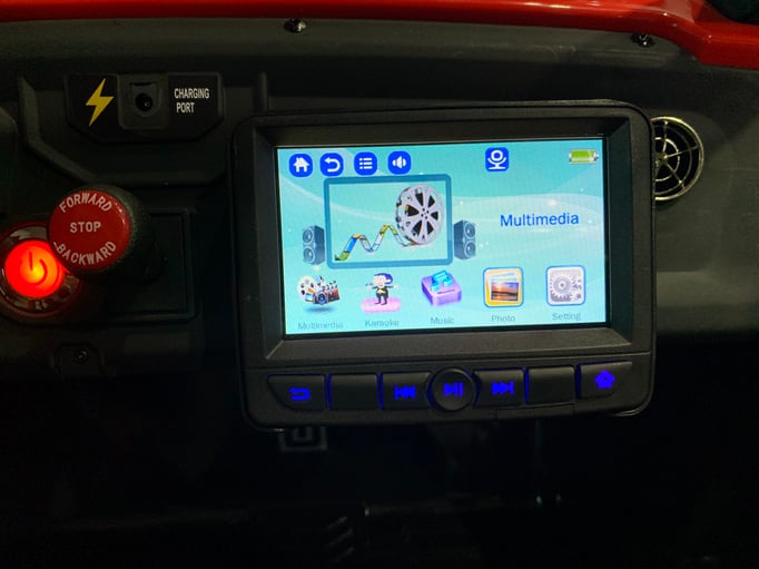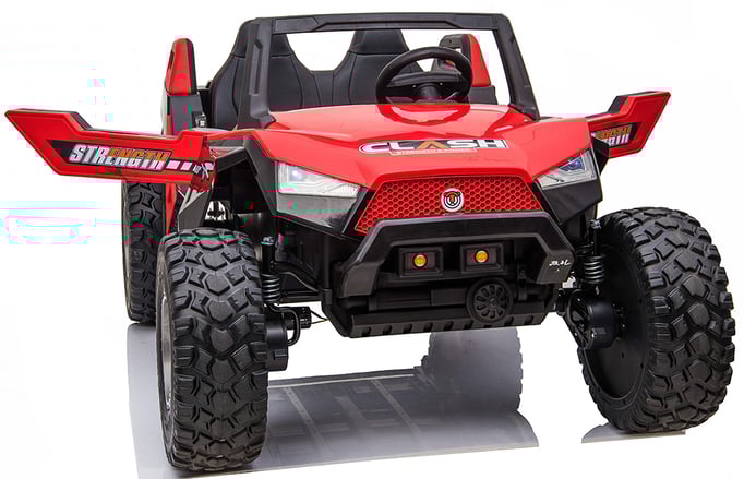 -2.4G remote -Two doors can be open -Adjustable leather seat ,front small fold-able seat -Mp4 player with USB ,TF slot , led lights -Four driving motors 35W,24v 10AH*1 battery -EVA tire