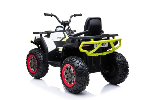 XMX607: 12V35W*2 12V7AH*1 2.4G REMOTE front and back light, music, USB, SD, MP3, Suspension wheels.